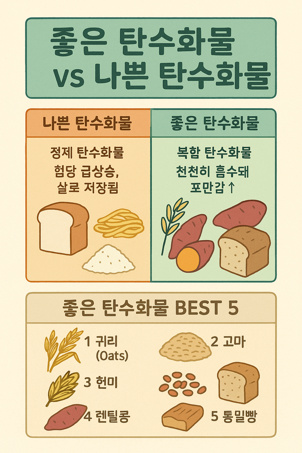 💡 탄수화물의 진실! 좋은 탄수화물 BEST 5 – 건강한 다이어트의 시작